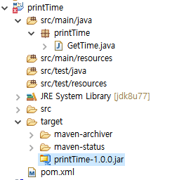 콘솔에 오류가 없이 정상적으로 진행이 되었다면 아래와 같이 target 에 jar 파일이 생성된다.