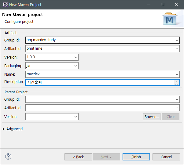 <project xmlns="http://maven.apache.org/POM/4.0.0" xmlns:xsi="http://www.w3.org/2001/XMLSchema-instance" xsi:schemaLocation="http://maven.apache.org/POM/4.0.0 http://maven.apache.org/xsd/maven-4.0.0.xsd"> <modelVersion>4.0.0</modelVersion> <groupId>org.macdev.study</groupId> <artifactId>printTime</artifactId> <version>1.0.0</version> <name>macdev</name> <description>시간출력</description> </project>