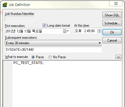 2012/12/13 - [분류 전체보기] - 오라클의 스케쥴 작업 (Jobs) 및 프로시저(procedure) 살펴보기 - 1